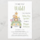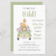 Eine preisgünstige Babysprinkle-Einladung mit einer niedlichen Abbildung von Tierkindern (Löwe, Elefant, Zebra, Affe und Giraffe), die in ein Safari-Fahrzeug gepackt wurden und "It's About to Get Wild" in lustiger Typografie, "Baby Shower" und dem Namen der Mutter bei der Koordination von Dschungelgrün-Schrift. Personalisieren Sie die Duschdetails einfach, ändern Sie den Text "It’s a Boy!" auf dem Fahrzeug, fügen Sie das Duschdatum auf dem Führerschein hinzu oder verließ leer.