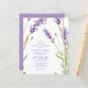 Wildblume Gartengarten Einladungen mit einem einfachen, weißen Hintergrund, eleganten Lavendelfloralen und einer Hochzeitsvorlage, die leicht zu personalisieren ist.