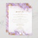 Dieses elegante, moderne Hochzeitsmenü besticht durch einen lavendelfarbenen Marmorrand, der mit einer Goldfolie aus Imitaten bespannt ist. Der anpassbare Text kombiniert goldfarbenes Skript mit serifenem Schriftart. Die Rückseite ist mit einem passenden Lavendel- und Goldmarmor-Design versehen.