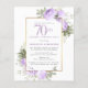 Ehre eine besondere Frau mit dieser eleganten und weiblichen Einladung zum 70. Geburtstag. 70. ist in großem lila Text geschrieben. Das Party der Geburtstagsüberraschung folgt. Der Name des geehrten Gastes ist auch in lila Hauptstädte zu finden. Der Rest des Textes ist weich taubengrau. Die Details der 70. Geburtstagsfeier sind von einem schicken goldenen Rahmen umgeben, der mit lila Rose und schlaugrünen Blätter geschmückt ist. Während es sich um ein traditionelles Design handelt, verleihen das offene und luftige botanische Blattwerk und der Text ihm ein zeitgenössisches Ambiente. Die Einladung zurück ist ein weiches lila. Leider sind die 70 Ziffern nicht editierbar. Wenn Sie noch ein Jahr brauchen, werde ich Ihnen gerne ein maßgeschneidertes Design machen.