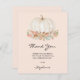 Dieses Budget Herbst Baby Dusche Dankeschön Karte verfügt über einen Aquarellkürbis und Grünpflanzen auf einem weichen pfirsichfarbenen Hintergrund. Ideal für ein Herbstmädchen oder eine geschlechtsneutrale Babydusche. Einfach anpassbar. Weil wir unsere Kunstwerke erstellen, werden Sie dieses exakte Bild von anderen Designern nicht finden. Original Wasserfarbe © Michele Davies.