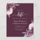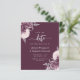 This elegant wedding save the date card features mauve floral bouquets set off with silver faux foil greenery in two corners, on a deep mauve background. The customizable text combines silver gray serif, italic and handwriting fonts. The reverse side features a matching mauve and silver floral design.