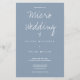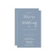 Eine Hochzeitseinladung auf Budget Papier für eine Mikro-Hochzeit. Diese leichtgewichtige Papiereinladung wird in Dusty Blau und Weiß mit gerade genug Informationen gemacht, um den Tag zu gewinnen. Fügen Sie einfach Ihre Informationen hinzu, fügen Sie diese zu Ihrem Warenkorb, und genießen Sie Ihre kleine und intime Hochzeit. (Auch die Option Satinpapier ist sehr dünn und Halbglanzpapier wird vorgeschlagen.) (Die Sammlung enthält Versionen dieser Einladung zu schwereren, traditionelleren, Papiertypen) Micro Wedding Dusty Blue Typografy Budget Paper Invitation Holidayday Design | ©Melissa Patton Designer
