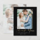 Gold Script Foto Hochzeit elegant stilvolle moderne danke Karte. Teil einer Hochzeitskollektion. Farben können geändert werden. Die Rückseite beinhaltet eine Danksagung, dass Sie für jeden Gast personalisieren oder ganz entfernen können, wenn Sie es vorziehen, schreiben Sie Ihren Dank.