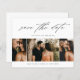 Eine romantische, einfache Foto-Save the Date-Karte mit wunderschöner Schriftzeichen-Kalligraphie, 3 Fotos und minimalem Text auf der Vorderseite. Auf der Rückseite befindet sich die Hochzeitswebsite für weitere Informationen. Klicken Sie auf die Schaltfläche Bearbeiten, um dieses Design anzupassen.