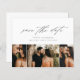 Eine preisgünstige, minimale Skript-Foto-Save the Date-Karte mit schöner Skriptkalligraphie, 3 Fotos und minimalem Text auf der Vorderseite. Auf der Rückseite befindet sich die Hochzeitswebsite für weitere Informationen. Klicken Sie auf die Schaltfläche Bearbeiten, um dieses Design anzupassen.