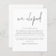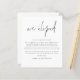 BITTE BEACHTEN Sie, dass Sie für diese Größe (4,5 x 5,6") zwei Papieroptionen im Bereich Budget auswählen können. Für dieses Produkt würde ich sehr empfehlen, das Halbglas, das ein 110 gsm Kartenstock ist, ähnlich dick wie eine Postkarte. Die Satin Option ist ein viel dünneres Papier 80gsm. Der Standardwert ist Set to semi-glloss. ***HINWEIS: EINE Einladung pro Blatt. Budget Minimalistisch QR Code Skript Wir haben die Ankündigung. Mit einem QR-Code zu einer Seite, wo Ihre Gäste können Ihre Hochzeit Fotos auf der Rückseite sehen. Ihr QR-Code wird automatisch generiert, um den Beispielcode im Design zu aktualisieren, wenn Sie einfach die Beispiel-URL in der Vorlage mit Ihrer eigenen URL ändern. Oder Sie können das entfernen, falls nicht erforderlich. Ein Set informelle handgeschriebene Skript für We Eloped und die Erholung des Textes können Sie leicht personalisieren.