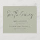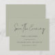 Eine günstige BUDGET-Alternative für eine kleinere Größe von 4,5 x 5,6 Zoll, die ein Gewicht von 110 lbs hat, die ähnlich dick ist wie eine Postkarte (sie ist jedoch nicht als Postkarte geeignet). BITTE BEACHTEN SIE, DASS ES EINE pro Blatt gibt. Budget Minimalistisches Skript blass Sage Green Rettete Der Abend. Einfache Eleganz mit Rett Der Abend in einem modernen Set-Skript.Die Erholung des Textes können Sie leicht personalisieren.Hier in schwarz auf weich hellen Sage grün angezeigt, aber die Text-und Hintergrundfarben können geändert werden, wenn Sie möchten über die weitere Option anpassen.