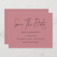 Budget Minimalistisches Skript Dusty Rose Save the Date. Ein Preis SMALLER 4,5" x 5,6" Alternative. Erhältlich in einem SEMI-GLOSS 110 lb CARD STOCK, der die Standardoption (dicker für Einladungen) ist, ODER einem SATIN FINISH 80 lb THINNER PAPER STOCK (ideal für Gehäuse). Umschläge sind optional und etwas größer als die Kartengröße. Einfache Eleganz mit Save the Date in einem modernen Set-Skript.Die Erholung des Textes können Sie leicht personalisieren.Hier in schwarz auf Dusty-Rose dargestellt, aber die Text- und Hintergrundfarben können geändert werden, wenn Sie möchten über die weitere Option anpassen.