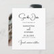 Das moderne Foto ist preisgünstig und speichert die Dattelkarten mit minimalistischer Schwarz-Weiß-Typografie und bietet eine schicke und erschwingliche Möglichkeit, Ihre Hochzeit anzukündigen. Dieses zweiseitige Design mit einem Foto-Rücken, das Ihr Lieblingsbild in der Verlobung zeigt, während die Vorderseite ein klares weißes Layout mit elegantem Schwarz-Text unterstreicht und einen stilvollen Schriftart mit zeitlosen Serifenschriften verbindet. Ideal für Paare, die eine preiswerte und dennoch anspruchsvolle Option suchen, kombiniert diese Vorlage Einfachheit und Eleganz für eine gepflegte Präsentation, die nahtlos zu modernen, klassischen oder rustikalen Hochzeitthemen passt. Das Hotel ist für einen unvergesslichen Aufenthalt konzipiert und eignet sich hervorragend, um Ihre Hochzeit mit Stil und Leichtigkeit zu teilen.