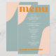 Abstract shapes retro vintage 70s style unique budget affordable wedding menu card with bold typography in a pastel trendy modern dusty blue, soft pink and orange chic color palette. +++++++ Please note that all the colors are changeable. ++++++++++++ Suitable for informal casual stylish contemporary weddings.