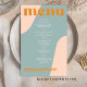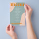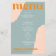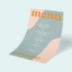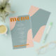 Abstract shapes retro vintage 70s style unique cheap budget wedding menu template flyer (advertising type of paper) with bold typography in a pastel trendy modern dusty blue, pink and orange boho chic color palette. +++++++ Please note that all the colors are changeable. ++++++++++++ Suitable for informal casual stylish contemporary weddings. ++++++++++++++++ PLEASE READ THIS BEFORE PURCHASING! This is a cheap budget wedding card printed on a FLYER (advertising type of paper suitable for folded mailings). ++++ Please note that BUDGET PAPER IS THIN - You can upgrade to have this card printed on cardstock ++++ ENVELOPES NOT INCLUDED. +++ Double-check all the information and spelling of your text because you will receive exactly what you see - no one else will check anything before printing.