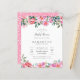 Moderne Brautdusche mit rosafarbenen Blume aus Aquarell und eleganter, moderner Typografie. Im Rahmen der Budgetauswahl hier auf Zazzle kommen diese Einladungen nicht mit Umschlägen und passen nicht einfach in einen Standard-Umschlag. Die nahe Größe ist A6, aber es wird eine Lücke von ca. 10 cm geben. Wenn es Ihnen an Sicherheit fehlt, können Sie so weit verfügbare A6-Umschläge verwenden. Andernfalls kann dieses Design über das Design Transfer Tool in ein Standardformat (das mit Umschlägen geliefert wird) übertragen werden. Als grober Leitfaden würden zum Zeitpunkt des Schreibens 100 Einladungen zum Haushalt (einschließlich eines Mengenrabatts) etwa 39 Dollar kosten, während 100 Standardeinladungen einschließlich Umschläge etwa 135 Dollar kosten würden. Ihre Meilen können je nach den verfügbaren Promo-Codes von Zazzle, dem standortweiten Verkauf oder den Preisänderungen variieren.
