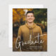 Ein Budget Modernes Script Foto Abschluss Einladung mit handgeschriebenem Schriftart voll blued portrait Foto auf der Vorderseite mit Namen und Abschluss Details. Die Rückseite hat ein zweites Foto mit Party Details. Klicken Sie auf die Schaltfläche Bearbeiten, um dieses Design anzupassen.
