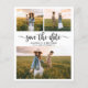 Budget elegante moderne boho Schwarz-Weiß-Drehbuch 3 Foto Collage Hochzeit sparen das Datum Ankündigung personalisiert erschwingliche Low-Budget-Papier. Chic minimalistisches Design-Template verfügt über drei (3) Paar Foto und elegante kursiv handgeschriebene Kalligraphie Pinsel Skript "Save the Date" Text in schwarz auf weißem Hintergrund. Wenn Sie Hilfe oder passende Artikel benötigen, wenden Sie sich bitte an den Designer.