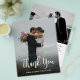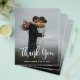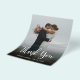Budget, Modern Hand Lettered Script Wedding Foto Danke Ihnen personalisiert erschwinglichen Low Budget Flyer. Moderne Stilvolle Hochzeit danke Ihnen Papier Vorlage mit einem vollen vertikalen Foto auf der Vorderseite mit dem Text "Danke" in einem riesigen handgeschriebenen Schrift Schrift Schrift Schriftart (Overlay) in Weiß auf dem Bild.