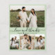 Budget, modern, elegant, Minimalistische Hand Lettered Wedding Vier (4) Foto Collage Danke Karte in Sage Green. Stilvolle Hochzeit dank der Kartenvorlage mit 4 Foto auf der Vorderseite und einem Foto auf der Rückseite. Mit dem Text "Liebe und Dank" in einer Wirblen Hand geschrieben Typografie Skript Swash-Schwanz-Schriftart in schwarz auf staubigen sage grün, oder hellolivgrün Hintergrund. Personalisieren Sie den individuelle Name und danken Sie Ihnen Nachricht. Kleines Herz zwischen den Namen. Wenn Sie es vorziehen, Ihre Notiz zu handschreiben, löschen Sie einfach den Beispieltext. Wenn Sie Hilfe oder Match-Artikel benötigen, kontaktieren Sie mich bitte!
