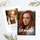 Budget Modern Lettering Simple Two Foto Graduation Party Einladung verfügt über ein großes, vollblutendes Foto an der Vorderseite, zusammen mit zwei Fotos und Ihre Graduation Party Details auf der Rückseite.