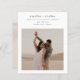 Eine preiswerte, moderne und dennoch minimalistische Hochzeitseinladung mit zwei Ihrer Lieblings-Verlobung-Fotos. Die Vorderseite dieser Karte zeigt Ihre Namen und das Hochzeitdatum in klassischer Schwarz-Weiß-Typografie. Das erste Foto erscheint darunter. Die Karten werden in ein zweites Foto Ihrer Wahl zurückgesetzt, das mit einem halbtransparenten weißen Overlay abgedeckt ist, um den Einladungstext wirklich zum Pop zu bringen! Die Veranstaltungsdetails werden in einer stilvollen Kombination aus eleganter Serif und schicker Schrift geschrieben. Wir haben uns für zwei Fotos mit boho Wüstenfarben entschieden, aber dieses Schwarz-Weiß-Design wird sicher mit allen Hochzeitsfarben funktionieren! Wenn Sie gewollt haben, die Namen zu ändern, um eine Hochzeitsfarbe zu verwenden, Schriftart zu ändern, Zeichensetzung oder Platzierung für die Textelemente auf der Vorder- und Rückseite dieses Designs zu verwenden, klicken Sie einfach auf "Personalisieren" und "Bearbeiten mit dem Entwurfswerkzeug", um auf die erweiterten Bearbeitungsoptionen zuzugreifen. Sie können auch das Foto auf der Rückseite dieser Einladung löschen, wenn Sie nur gewollt haben, eine zu zeigen! Als Teil der Budgetauswahl auf Zazzle ist dieses Blatt keine Standard-Einladungsgröße oder Papierqualität. Wenn Sie dieses Design auf einer Einladungskarte gewollt haben, können Sie es in unserem Shop finden oder mit der Zazzle Make Machine auf das Produkt Ihrer Wahl übertragen. Wenn Sie eine Hand mit etwas brauchen oder mit mir an einer maßgeschneiderten Bestellung arbeiten möchten, können Sie mir einfach über den unten stehenden Button eine Nachricht schicken! Bitte kontaktieren Sie mich vor dem Kauf, da ich eine bestehende Bestellung nicht bearbeiten kann. Karo in unserem Shop für andere Papiersorten und weitere Hochzeitsdesigns!