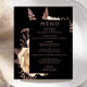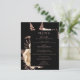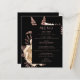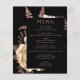 Dieses elegante, stimmungsvolle Hochzeitsmenü bietet ein üppiges, romantisches Blumenstrauß in Elfenbein mit Imitaten aus Rose und Glitzer auf schwarzem Hintergrund. Pink-Rose in stylischen Schriftart auf einem schwarzen Rechteck anpassen. Die Rückseite der Karte ist schwarz.