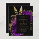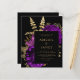 Dieses elegante, stimmungsvolle Hochzeitsangebot besticht durch ein romantisches Blumenstrauß lila mit Goldfolie und Glitzer-Blattwerk auf schwarzem Hintergrund. Passen Sie den goldfarbenen Text in stilvollen Schriftart auf einem schwarzen Rechteck an. Die Rückseite bietet Platz für Hochzeitsdetails auf einem soliden schwarzen Hintergrund, zusammen mit einem QR-Code können Gäste scannen, um Ihre Website und UAWG zu besuchen, was die Kosten für den Druck und Versand separater RSVP-Karten rette.