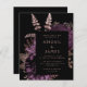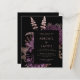 Dieses elegante, stimmungsvolle Hochzeitsinklusive besticht durch ein romantisches Blumenstrauß lila mit Rose-Imitat-Folie und Glitzer-Blattwerk auf schwarzem Hintergrund. Pink-Rose in stylischen Schriftart auf einem schwarzen Rechteck anpassen. Die Rückseite bietet Platz für Hochzeitsdetails auf einem soliden schwarzen Hintergrund, zusammen mit einem QR-Code können Gäste scannen, um Ihre Website und UAWG zu besuchen, was die Kosten für den Druck und Versand separater RSVP-Karten rette.