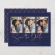 BUDGET Navy Blue Art Deco Rose Gold Handgeschriebene Multiple Foto Card in einem eleganten Schriftart, der ein romantisches handgeschriebenes Gefühl hervorruft. Auf der Rückseite ist ein trendiger, geometrischer Art Deko Stil Design in schicke Rose Gold-Folie auf einem marineblau Hintergrund. Entwickelt um drei Ihrer bevorzugten Foto für zusätzliche Anpassungen zu verwenden. Fügen Sie einfach Ihre Namen und Daten für ein wirklich personalisiertes Design hinzu. **Unser BUDGET Papier ist kleiner und zarter, aber trotzdem schön! Vergessen Sie nicht die Umschläge!** Wenn Sie Hilfe oder passende Artikel benötigen, kontaktieren Sie uns bitte unter cedarandstring@gmail.com