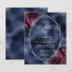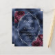Diese elegante, moderne Hochzeitseinladung besticht durch einen silbernen geometrischen Rahmen, der mit bordeauxroten und silberfarbenen Blumenbouquets auf einem seeblauen Imitat-Hintergrund dekoriert ist. Der anpassbare Text kombiniert silbergraue, weißliche Handschrift, Kupferplatte und kursiven Schriftart.