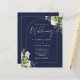 Dieses Budget elegante botanische Grün Blätter Hochzeitseinladung kann mit Ihren Informationen in chic Typografie personalisiert werden mit Ihren Monogramm Initialen auf der Rückseite auf einem marineblau Hintergrund. Entwickelt von Thisisnotme©