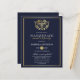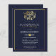 Budget Navy Blue & Gold Masquerade Sweet 16 Party Einladungen. Mit einer goldenen Folienmaske aus Imitaten oben vor einem marineblau-blauen Hintergrund. Perfekt für eine moderne und dennoch schicke, süße 16 Geburtstagsparty!