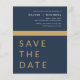Budget Navy Blue Gold Save the Date Elegant