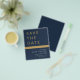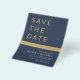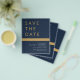 Budget Hochzeit Elegant Navy Blue und Gold speichern Sie die Datumskarten. Die Save the Date-Karten enthalten eine moderne, handgeschriebene, kursive Schriftzeichen-Typografie, die elegant, einfach und modern nach einem einfachen Hochzeitstag-Fest zu verwenden sind.