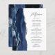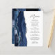 Budget Navy Blue Silver Agate Script Wedding Menü