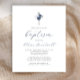 Diese elegante Taufveranstaltung mit einem Aquarellbouquet aus staubblauen und marineblau blauen Blumen und silberfarbenem Blattwerk auf einem silbernen Imitat-Folienkreuz, über den Worten "Bitte schließen Sie uns für die Taufe unseres Sohnes" in eleganter marineblauer Handschrift Kalligraphie und Holzkohlegrau kursiv. Personalisieren Sie es mit dem Namen in blauem Skript und die Details in grauen Sans Serif Schriftart.