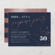 Budget Navy & Rose Gold Script Überraschungen Party Einladungen. Shhh... es ist eine Überraschung! Stilvolle Überraschungsgeburtstagsfeier mit schicker Kalligraphie und moderner Typografie. Die Geburtstagsnummer ist umgeben von Imitaten Rose Gold Konfetti vor einem marinen Hintergrund.
