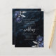 This elegant wedding invitation features navy blue floral bouquets set off with silver faux foil greenery in two corners, on a background image of navy blue watercolor agate. The customizable silver gray text combines serif, italic and handwriting fonts. The reverse side provides space for wedding details, along with a QR code guests can scan to visit your website and RSVP.