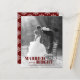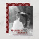 Feiern Sie Ihr erstes Weihnachtsfest zusammen mit dieser attraktiven Budget-Urlaubskarte. Das Design enthält die Worte "Verheiratet und hell" mit Ihrem Foto. Fügen Sie Ihre eigene persönliche Nachricht hinzu. Die Karte kehrt auf einem roten Hintergrund zu einem Schneeflockenmuster zurück.