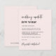 Die zeitgenössische, hellrosa Ankündigung eines neuen Veranstaltungsortes für Hochzeitsfeiern mit "wedding update new place", die in einer Mischung aus zeitgenössischer Schrift und fett-trendiger Typografie geschrieben wurde (Sie können dies auf "neues Datum", "kleinere Hochzeit" usw. anpassen). Personalisieren Sie Ihre Planungs-Nachricht, fügen Sie Ihre Namen in einem signaturähnlichen Skript hinzu und fügen Sie Ihre Hochzeitwebsite auf der Rückseite oder verlass leer.