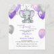 Dieses attraktive Budget Baby Dusche Einladung enthält lila und graue Mädchen Elefanten mit Ballons und Konfetti. Die Rückseite ist mit einem weichen lila Aquarellhintergrund versehen. Einfach auf Ihre Veranstaltung zugeschnitten, indem Sie auf Personalisieren klicken.