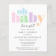 Diese preisgünstige Baby-Dusche-Einladung beinhaltet "oh baby" in einem Regenbogen pastellfarbener aquamariner, blauer, grüner, rosa, lila und orangefarbener moderner, mutiger Typografie und "Es ist ein Mädchen!" in einem stilvollen Drehbuch.