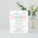 Diese preisgünstige Babydusche-Einladung beinhaltet "oh baby" in pastellfarbener aquamariner, blauer, grüner, rosa, lila und orangefarbener moderner Typografie, einen koordinierenden abstrakten Regenbogen und "Es ist ein Mädchen!" in einem stilvollen Drehbuch.