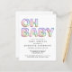 Diese preisgünstige minimale moderne Baby Dusche Einladung enthält "OH BABY" in Illustrationen von Ballons in einem Regenbogen aus Paste, blau, grün, rosa, lila und orange geschrieben. Sie können sich einfach mit den Duschdetails personalisieren und auf Wunsch "Baby Shower" oder "Baby Girl Shower" nach Ihren Wünschen anpassen.