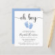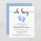 Niedliche preisgünstige Kleinkind-Einladung mit "oh boy" in einem stilvollen Skript mit Wimpern und einer pastellblauen Wasserfarbe von Babyfüßen. Unterhalb können Sie leicht die Details des Babysprinkle personalisieren.