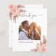 Eine moderne Hochzeit danke Ihnen Fotokarte. Weißer Hintergrund. Die Einrichtung besteht aus goldfarbenen Blüten in Rosa und Rose und Pampasgras. Personalisieren und fügen Sie 2 Ihrer Hochzeitsfeier Fotos und danke Ihnen, dass Sie auf der Rückseite notieren