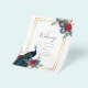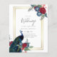 Schöner Pfau mit Aquamarinen und blauen, bordeauxfarbenen Blume, Salbei-grüne Blätter in diesem Herbst, Herbst, Winterhochzeit. Teil einer größeren Sammlung, die preiswerte Einladungen für Hochzeiten, speichern Sie die Daten, RSVPs, danke Fotokarten, Bridal und Hochzeitsfeier Geschenke, und vieles mehr. Für eine detailierte Gratis-Winter Hochzeitsplanung besuchen Sie bitte weddingdesignchic.com.