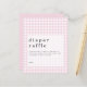 Ein Preis SMALLER 4,5" x 5,6" Alternative. Die SATIN FINISH 80 lb ist ein THINNER PAPIERSTOCK (ideal für Gehäuse wie diese), alternativ in einem SEMI GLOSS 110 lb CARD STOCK (ideal für Einladungen) erhältlich. Umschläge sind optional und etwas größer als die Kartengröße. Pink Gingham Diaper Raffle Gehäuse. Baby Mädchen. Der Header ist groß in stilvollen Kleinbuchstaben, die Details unten auf einer Deckschicht überlagert auf dem Gingham-Hintergrund. Personalisieren Sie den Text einfach auf Ihre eigenen Daten.