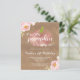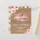 Die erste Geburtstagsfeier dieses rustikalen Mädchens lädt mit einer Rose Goldkürbis aus Imitat und den Worten "Unser kleiner Kürbis dreht sich um einen" in dekorativer Weißschrift ein. Hübsche rosa Perlenblüten schmücken zwei Ecken. Personalisieren Sie es mit ihrem Namen und Geburtstagsnummer in passender weißer Schrift und den Details in weißen Sans Serif Schriftart auf braunem Kraft-Look Hintergrund. Die Rückseite weist auf einem braunen Kraft-Look-Hintergrund ein passendes rosafarbenes Toronenmuster auf. Ideal für eine Geburtstagsfeier im Herbst!