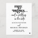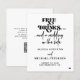 Einfache informelle schwarz-weiße trendige retro-bold typografie informelle Hochzeit sparen Sie das Datum Budget günstige Karte mit einem lustigen casual "kostenlose Getränke und eine Hochzeit auf der Seite" moderne typografie Schrift.