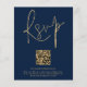 Budget QR Code Gold Navy Blue Script Hochzeit RSVP