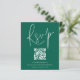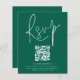 Budget QR Code Script Wedding Emerald UAWG Ein Wert für Geld BUDGET Alternative auf einer kleineren Größe 4,5 x 5,6" semi-Glanz 110lbs Gewicht, die von ähnlicher Dicke wie eine Postkarte (aber nicht geeignet, als Postkarte zu verwenden). BITTE BEACHTEN SIE, ES GIBT EINE Einladung pro Blatt . Eine praktische Option Gehäuse, um Ihre Gäste fragen, um Ihre QR-Code auf Ihrer Hochzeitswebsite zu UAWG scannen. Eine stilvolle Set-Typografie in Weiß für die Hauptüberschrift UAWG ergänzt die Erholung des Textes, die Sie leicht personalisieren können.